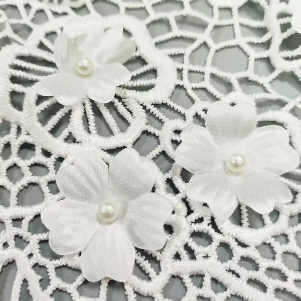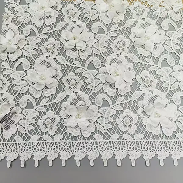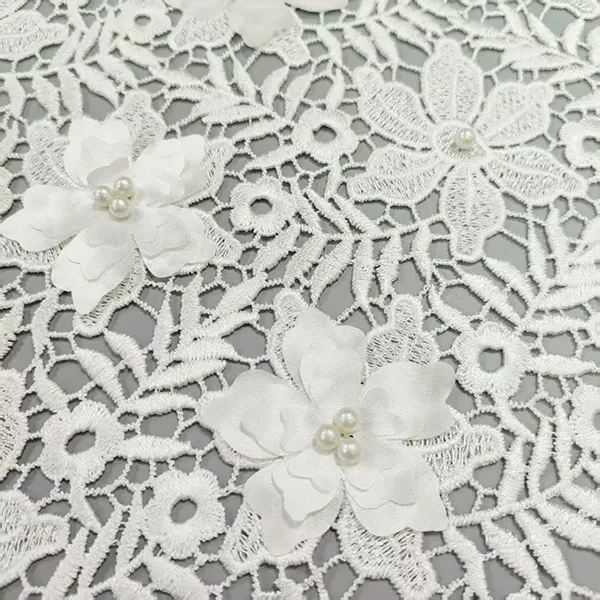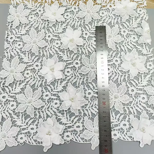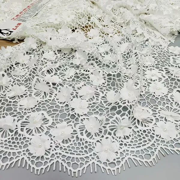 | Nome do produto | Tecido de renda floral 3D Fabric pérolas de água de água de bordado de cordão solioso | ||