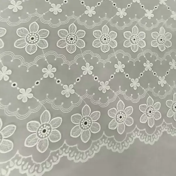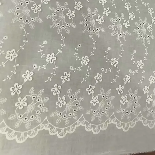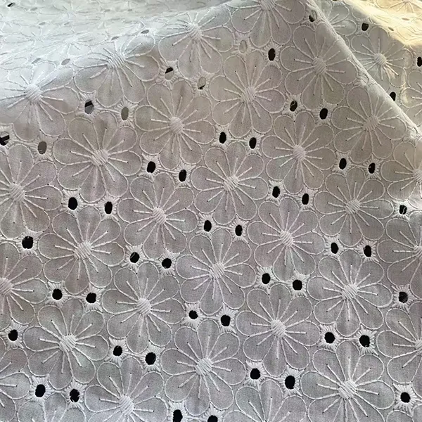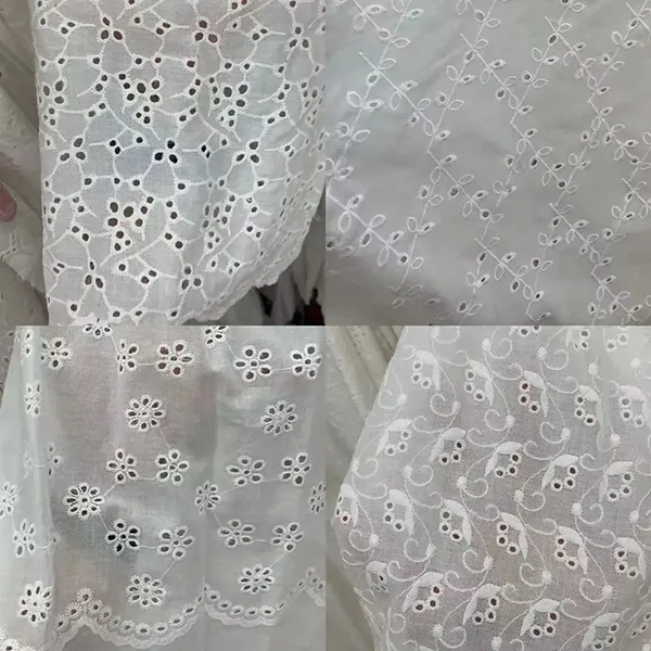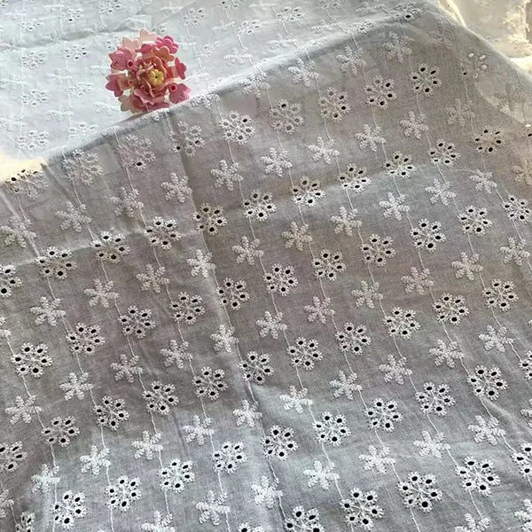 Tecido bordado de ilhas de renda de algodão bordado Este tecido leve e respirável de renda de algodão apresenta bordados delicados, oferecendo um design encantador e texturizado perfeito para a moda da primavera e do verão. Ideal para vestidos, blusas, cortinas e artesanato, combina elegância vintage com conforto natural. Os padrões de ilhós ** OpenWork ** aprimoram o fluxo de ar, mantendo a durabilidade. Soft, versátil e fácil de costurar, este tecido é uma opção atemporal para a decoração de vestuário e domicílio. Disponível em várias cores e larguras, é perfeito para estilos românticos, boho ou clássicos.