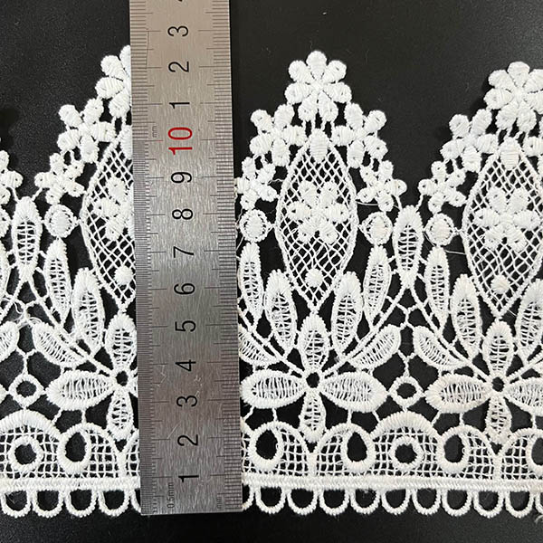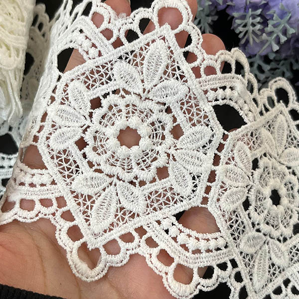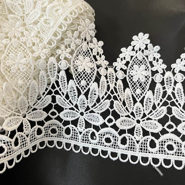 LB® é um fabricante de guarnição de renda de poliéster bordado em grande escala, esta guarnição de renda de poliéster bordado é o mais recente design de renda de alta qualidade. A guarnição de renda de poliéster bordado é feita de seda química/leite, pode ser usada em roupas, bolsas e produtos têxteis para o lar.