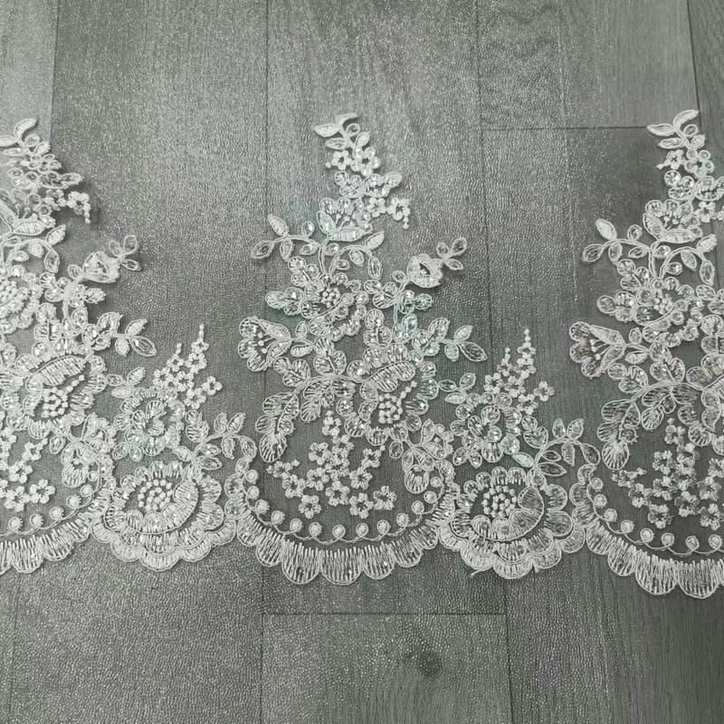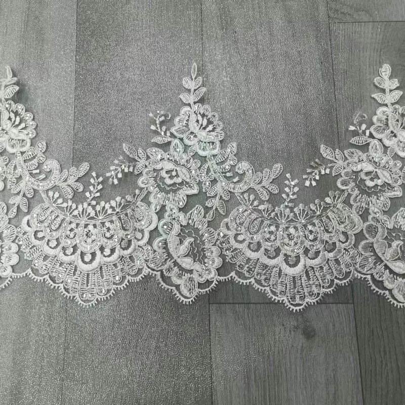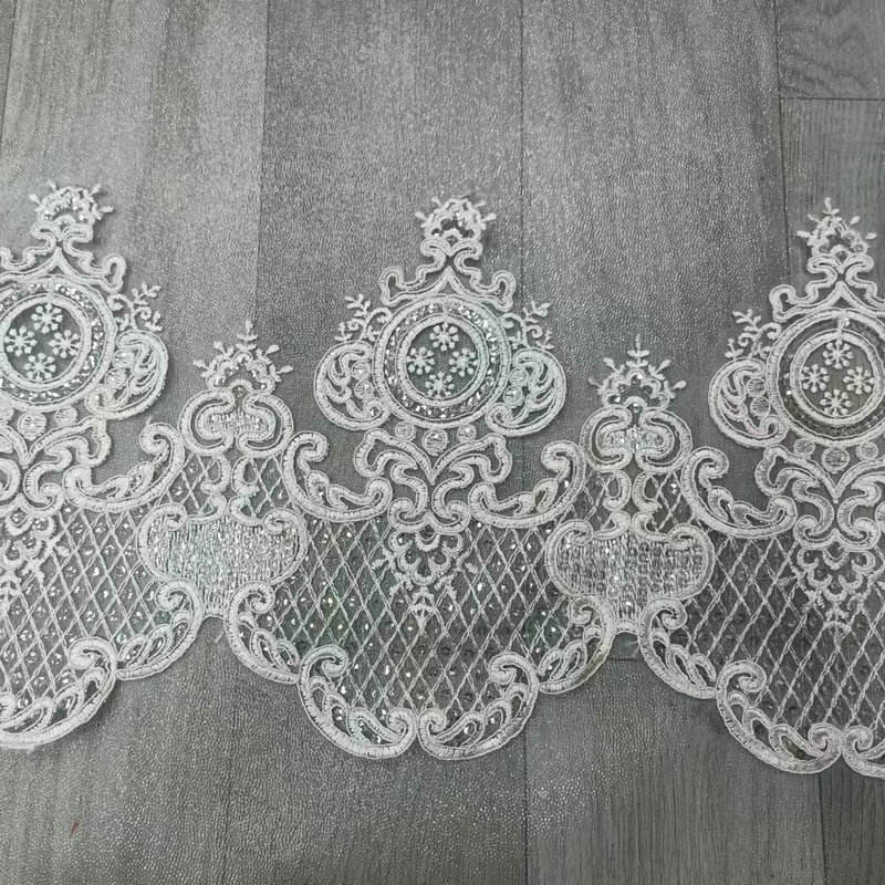 Luxo Branco Branco French Lace Bordado Bordado de Cunda para Vestido de Noiva Com uma base de renda francesa de ponta, requintada artesanato tridimensional de bordado e tons brancos puro, ele exala elegância. Decorações personalizadas de ponta especificamente para vestidos de noiva e vestidos de noite, com padrões delicados e intrincados, textura leve e penetrante na pele, suporte para personalizar largura e padrões, interpretando perfeitamente a estética de noivas românticas e luxuosas. Com uma base de renda francesa sofisticada, requintada artesanato tridimensional de bordados e tons brancos puro, ele exala a elegância. Decorações personalizadas de ponta especificamente para vestidos de noiva e vestidos de noite, com padrões delicados e intrincados, textura leve e penetrante na pele, suporte para personalizar largura e padrões, interpretando perfeitamente a estética de noivas românticas e luxuosas.