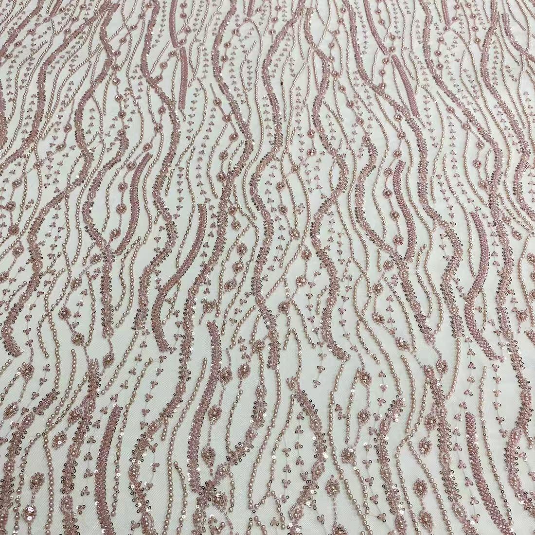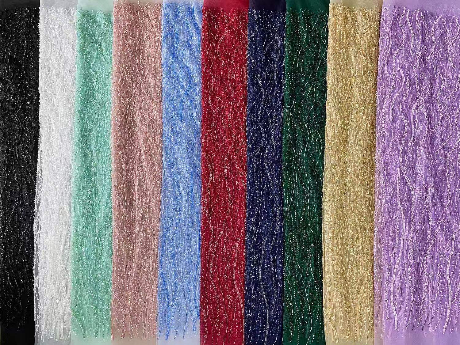 Novo bordado de malha bordado bordado bordado de tecido africano renda A base inovadora de malha combinada com bordados tridimensionais de tubo de miçangas exala um forte sabor étnico africano. Adequado para alta costura, figurinos de palco e roupas culturais e criativas, ele suporta padrões personalizados e combinações de cores, destacando a textura luxuosa e exótica.