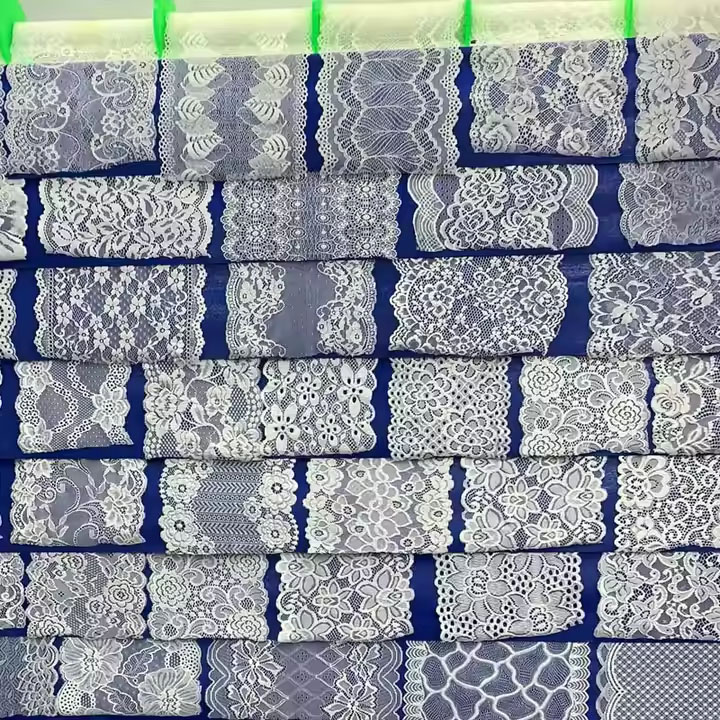 4. Materiais de renda elástica diferentes são diferentes. Algodão: macio, respirável e confortável na pele. Nylon: forte, durável e resistente à abrasão. Fibra elástica: fornece um bom alongamento e recuperação. Mistura: fornece uma combinação de diferentes propriedades de fibra.