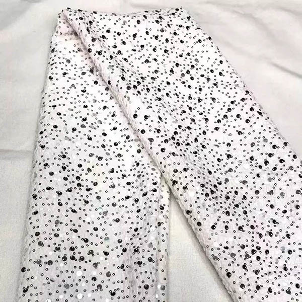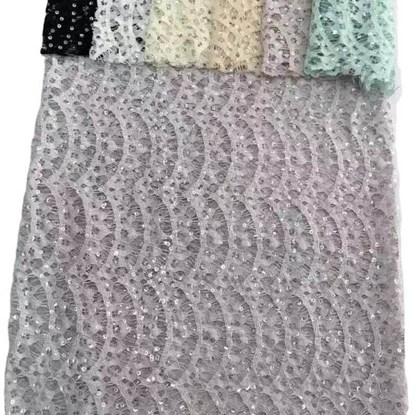 Há mais um tipo adorável de tecido de renda com lantejoulas, geralmente são tecidos costurados. Eles parecem absolutamente adoráveis e são perfeitos para decorar roupas casuais e vestidos de noite.