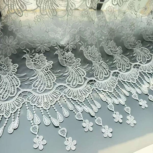 Seda de leite branco de 3 cm, guarnição de renda bordada solúvel em água de poliéster