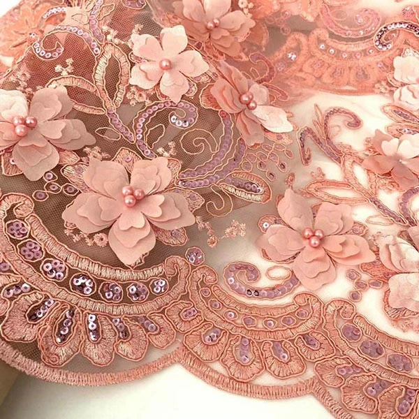 Alta qualidade Bordado de bordado com contas florais 3D Decoração de renda de tecido