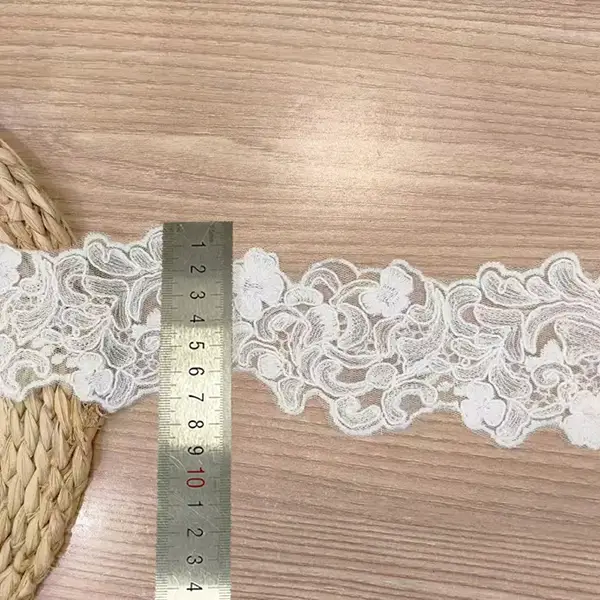 Seda de leite branco de 3 cm, guarnição de renda bordada solúvel em água de poliéster