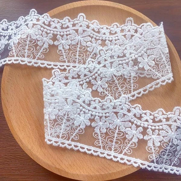 Seda de leite branco de 3 cm, guarnição de renda bordada solúvel em água de poliéster